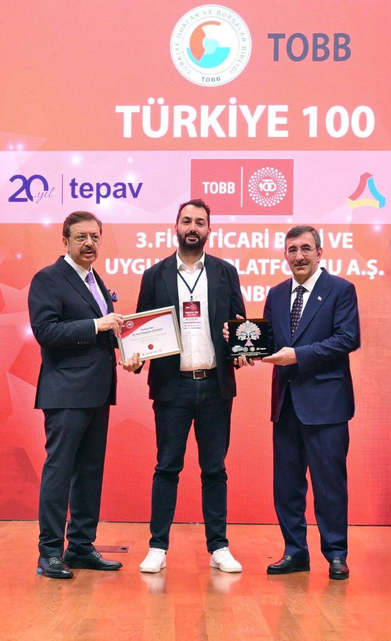 Bu yıl 25 şehirden ve bilişimden makineye, toptan ticaretten metal ürünlere kadar 34 farklı sektörden şirketin yer aldığı “Türkiye 100” sonuçları, Cumhurbaşkanı Yardımcısı Cevdet Yılmaz ve iş dünyasının katılımıyla, TOBB Başkanı M. Rifat Hisarcıklıoğlu’nun ev sahipliğinde düzenlenen törende açıklandı. Figopara adına üçüncülük ödülünü Figopara CFO’su Fırat Aytaş, Cumhurbaşkanı Yardımcısı Cevdet Yılmaz ve TOBB Başkanı M. Rifat Hisarcıklıoğlu’ndan aldı.